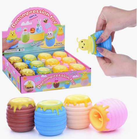 Антистресс Мишка/Пчелка в Бочке мёда, с запахом в уп 12шт. цена за шт.