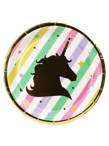Бумажные тарелки с золотым тиснением Единорог,18 см,6 шт, еврослот