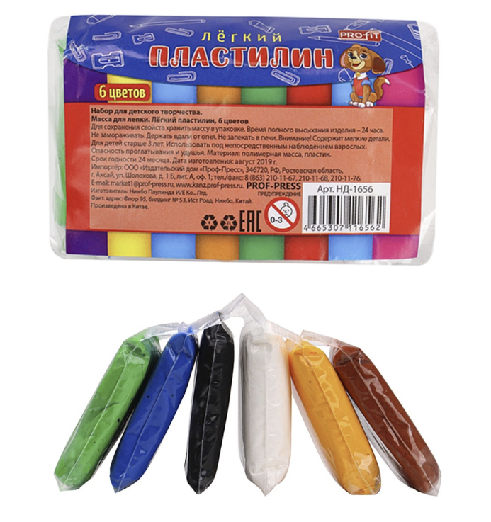 Масса для лепки. Лёгкий пластилин, 6 цв.,