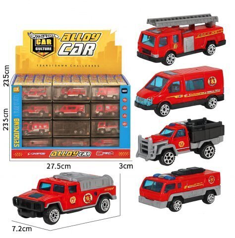 Металлически машинки 60 в уп 7 см ассорти Пожарные