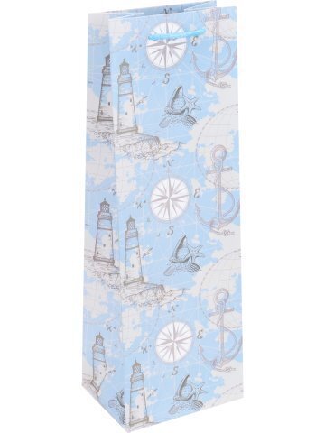 Пакет подарочный с мат. лам. 12x36x9 см Якорь и маяк, 210 гр