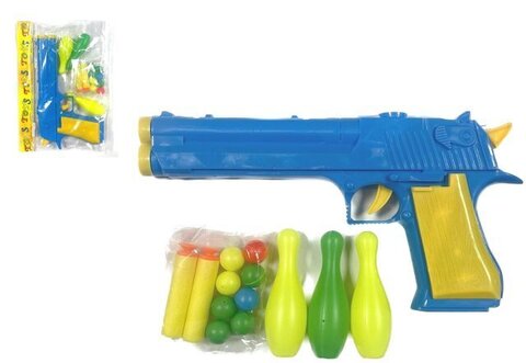 Пистолет 23см + Шарики + Мягкие Пули + Кегли, в пак.