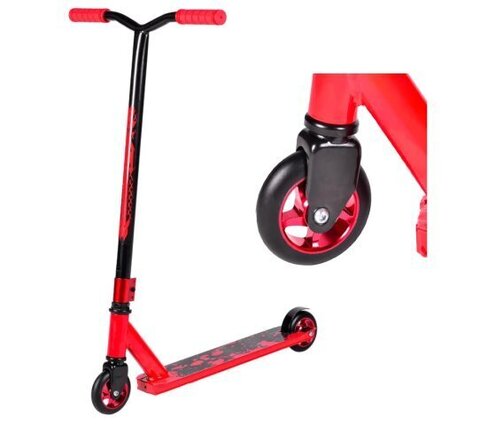 Самокат трюковой Красный, мет. спицы, дэка: дл≈48,5см, ш≈10см, толщ≈2,5см, h руля≈82,d колеса -10 см