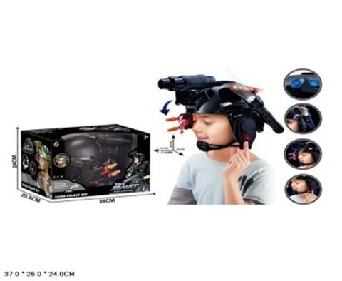 Шлем спецназ свет, бинокль, звук, стреляет дротиками, размер 37*26