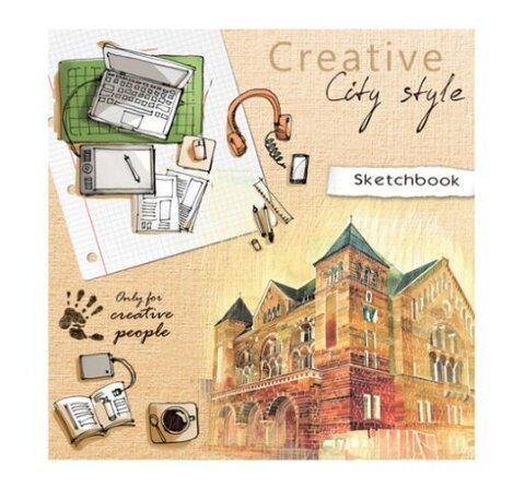Скетчбук 80л. ГОРОДСКОЙ СТИЛЬ 7БЦ, матовая ламинация 150х150мм