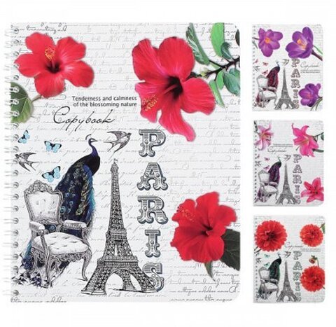 Тетрадь КЛЕТКА 48л. ПАРИЖ И ПТИЦЫ (48Л-6915) гребень. выб.лак. цвет.мелов.обл.